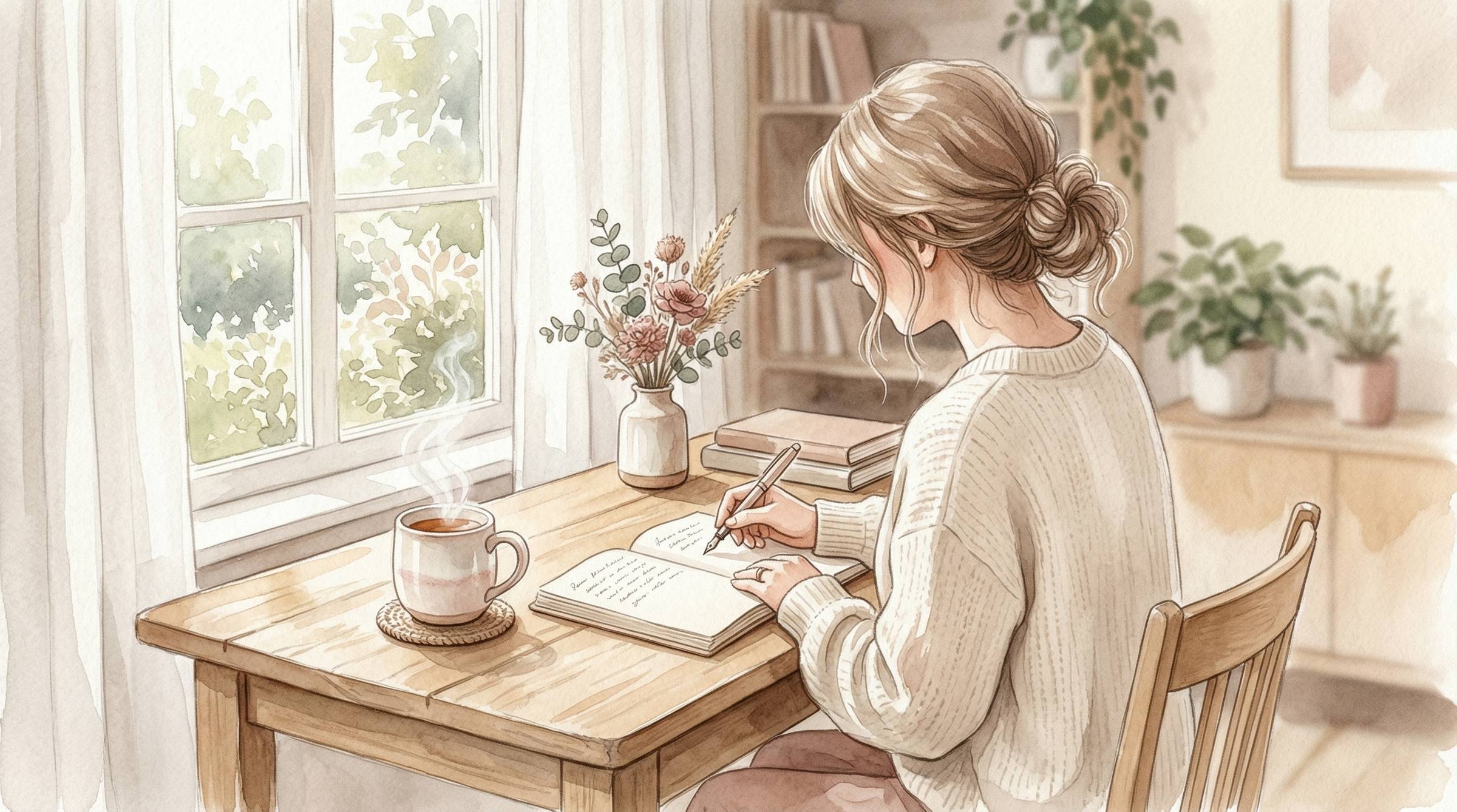 Rejoins + de 1 100 femmes hypersensibles introverties 🌸 Chaque semaine, un exercice d'écriture thérapeutique doux et actionnable, à faire en 3 à 5 minutes, pour prendre soin de ton bien-être émotionnel et mental 🍵🩷